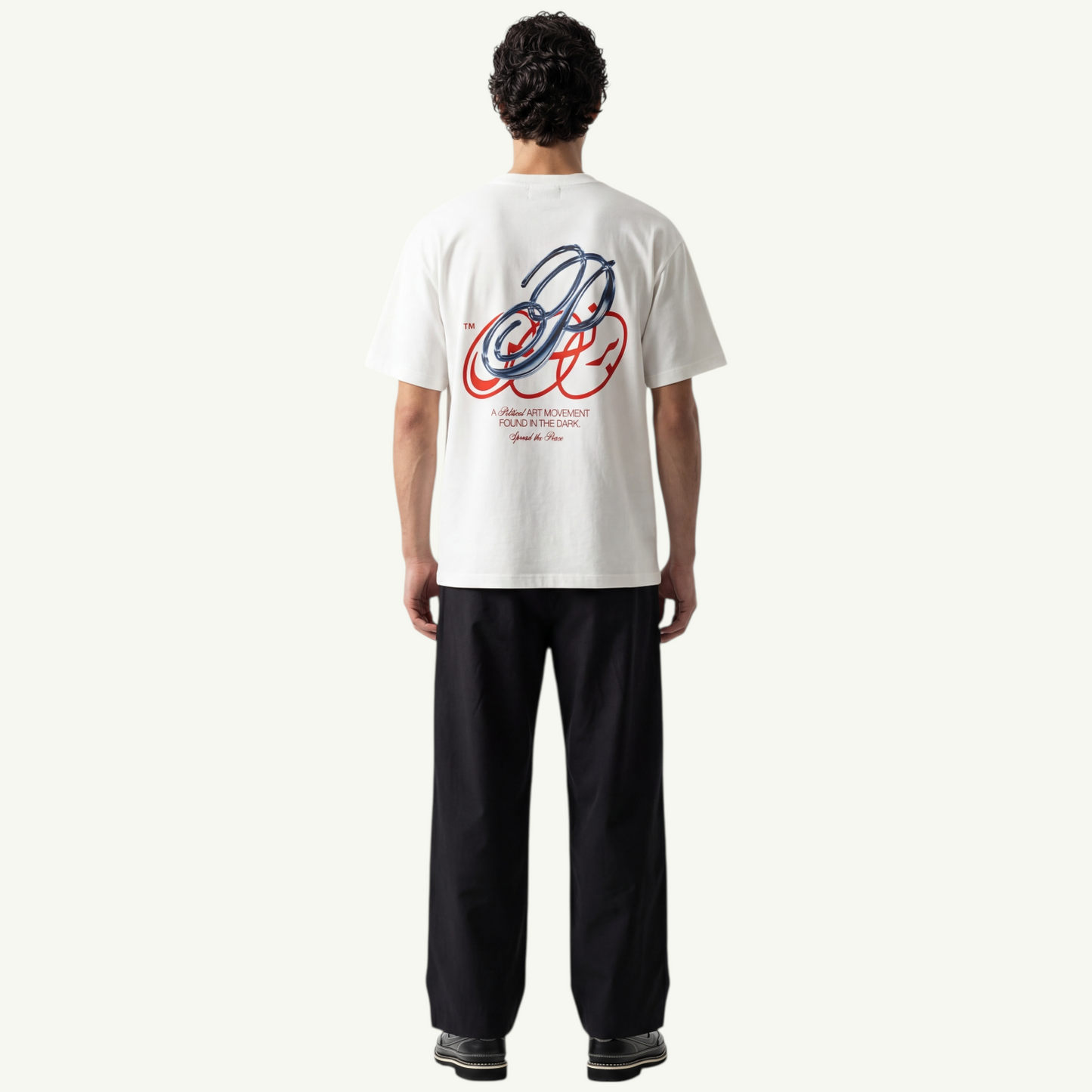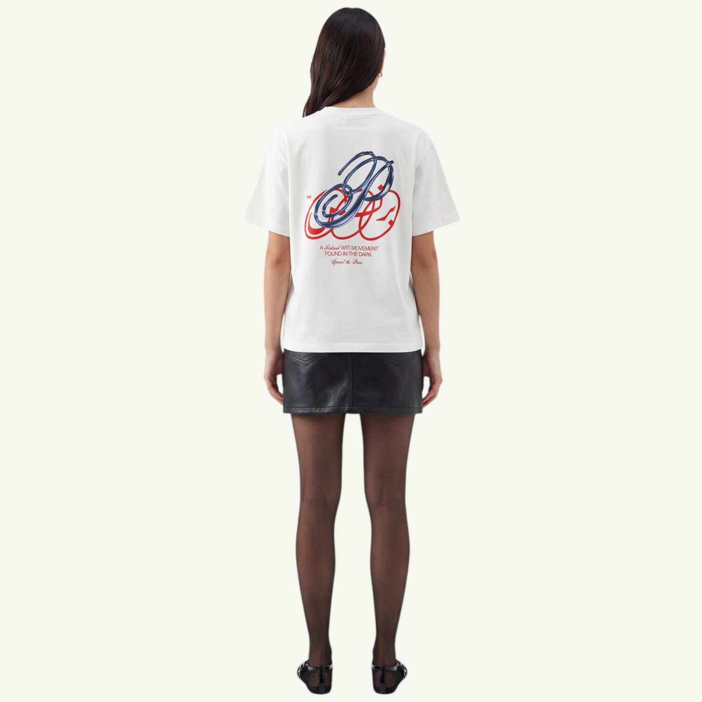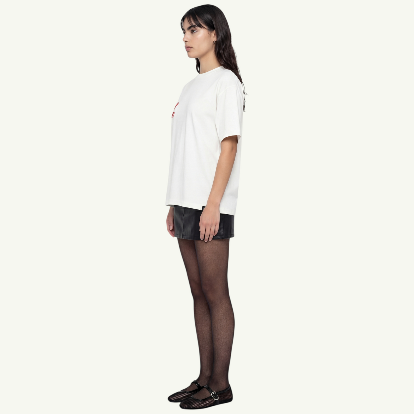 Un t-shirt blanc épuré, marqué du logo et d’une étoile rouge.